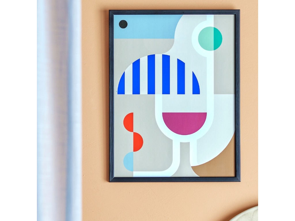 Abstraktní obraz Wine od Bloomingville upoutá pozornost svým pestrobarevným motivem na první pohled. Na obrazu spolu kontrastují grafické tvary a výrazné barvy, zatímco černý rám z borovicového dřeva, který obraz lemuje, vytváří elegantní a moderní výraz. Pověste tento originální kousek nad vaši pohovku, toaletní či pracovní stůl a dodejte prázdné stěně svěží nádech!