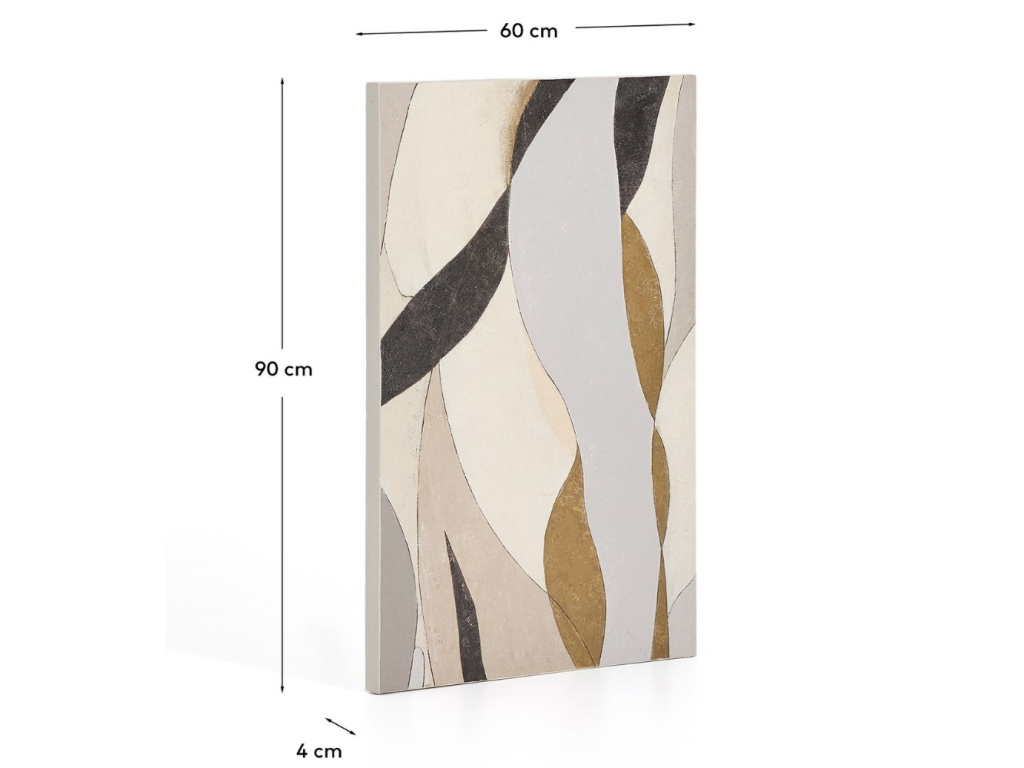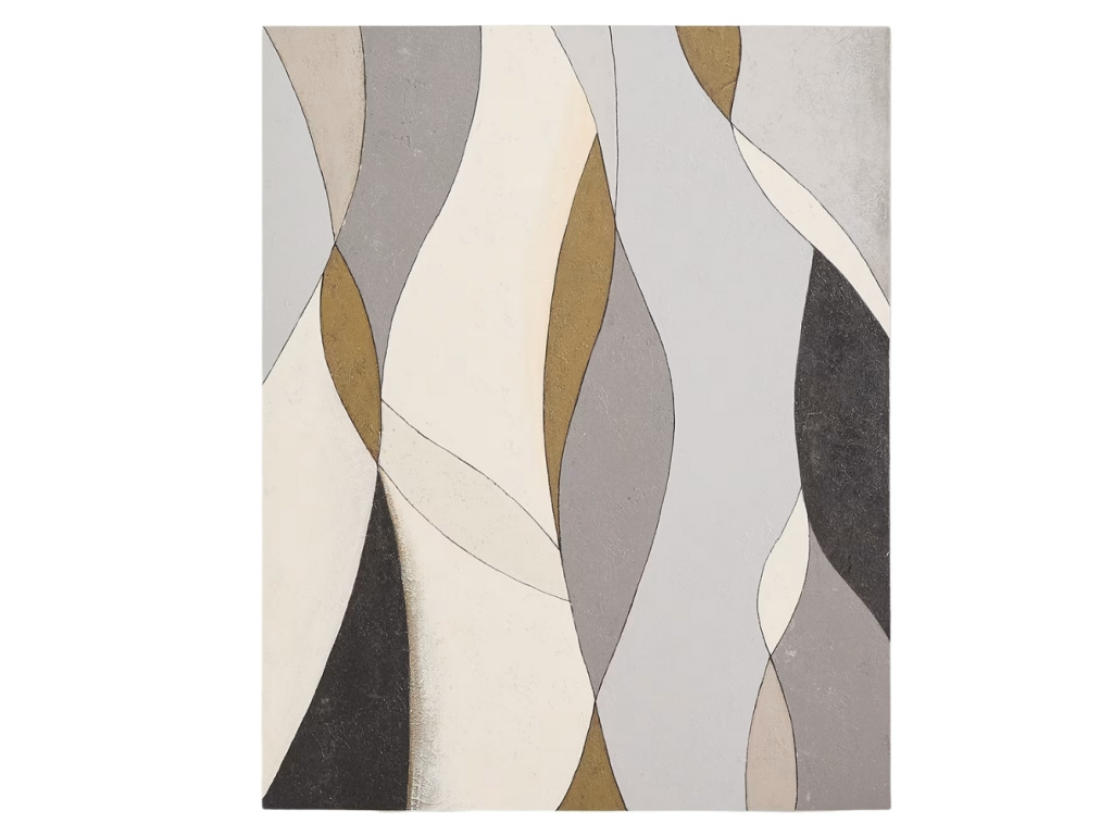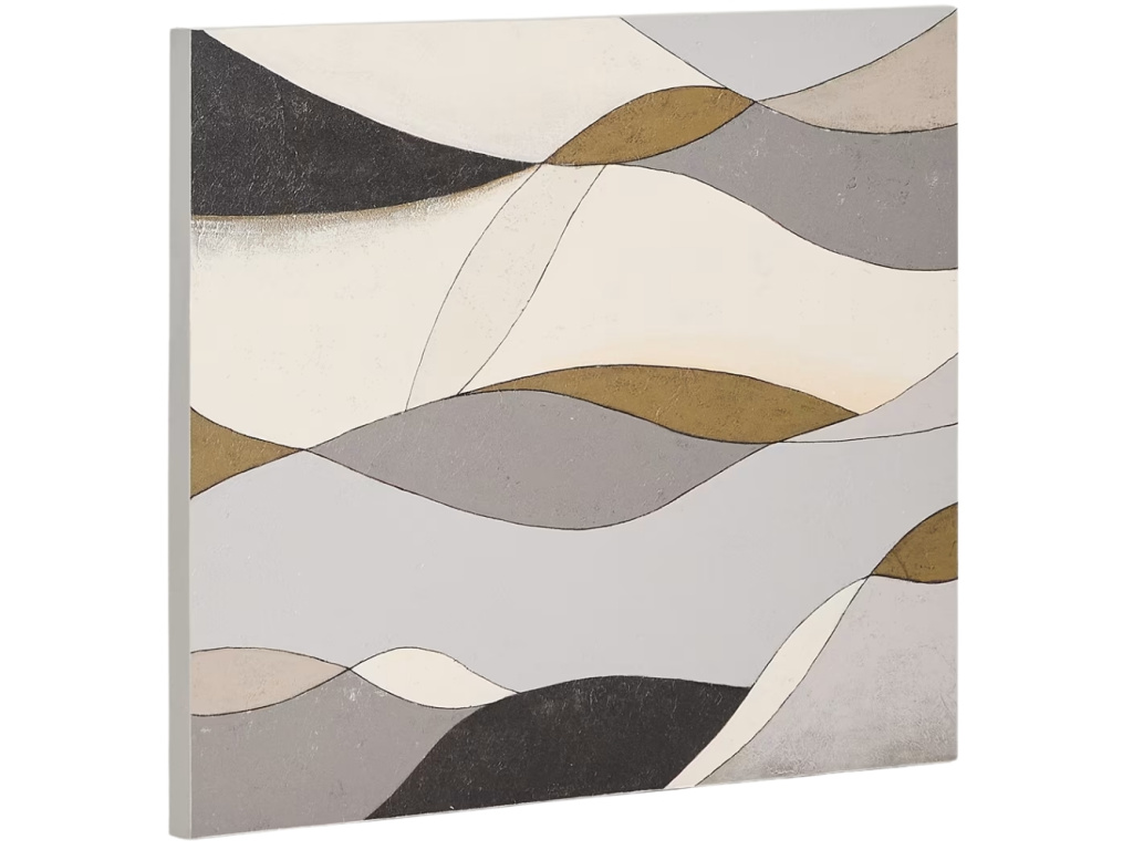 Abstraktní obraz Marvilo v šedých a béžových tónech přináší do interiéru energii i harmonii. Jemné linie a organické tvary se navzájem prolínají a vytvářejí vyváženou kompozici, která působí klidně, a přitom poutavě. Kombinace neutrálních odstínů s akcentem hořčicové dodává obrazu hloubku a snadno se začleňuje do moderních obývacích pokojů, ložnic i pracovních prostor. Marvilo se stane stylovým doplňkem, který podtrhne osobitý charakter vašeho domova.