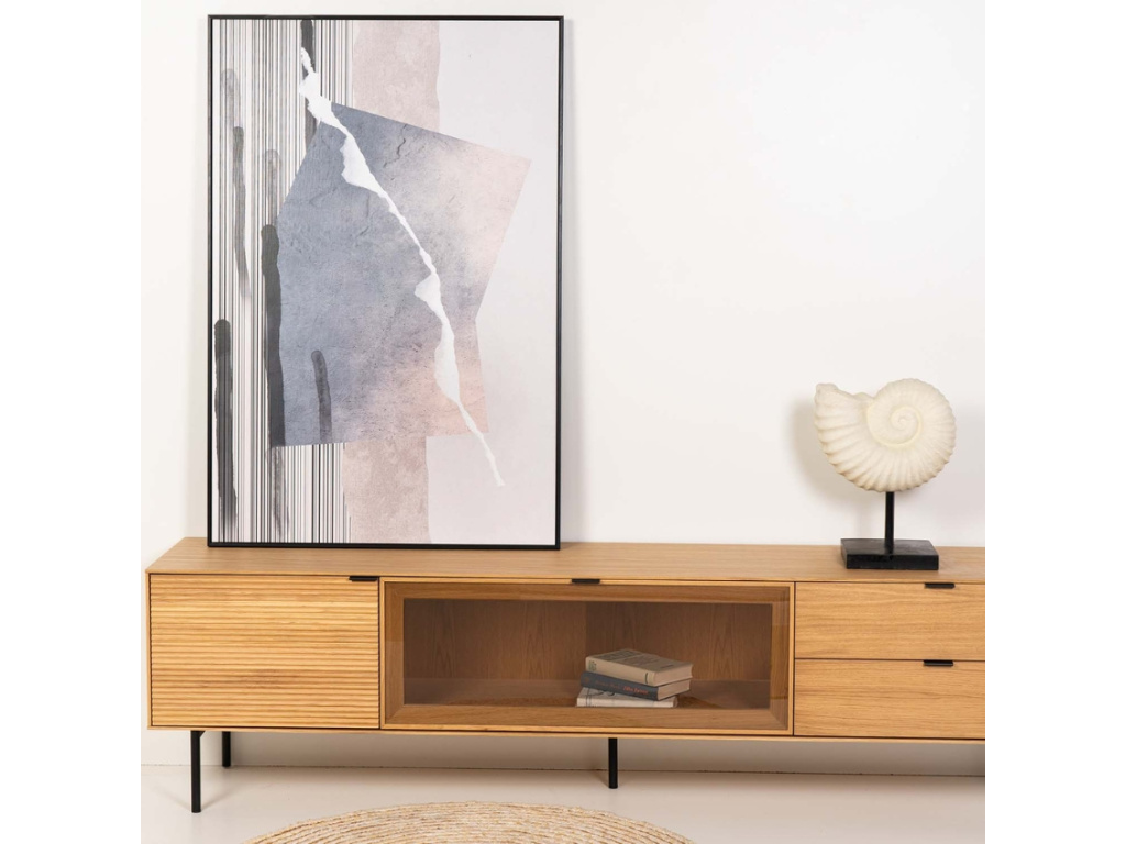 Obraz Rayfish od španělské značky Somcasa vás okouzlí námětem abstraktního rejnoka, plujícího v moři. Motiv je zajímavý díky něžným pastelovým barvám, které kontrastují s černými tahy a linkami na pozadí. Nejkontrastnějším prvkem je však bílá šmouha, která si line diagonálně téměř přes celý obraz. Tento kousek skvěle vynikne v moderních interiérech například nad pohovkou, postelí, či jen tak položený na komodě. Díky kovovým háčkům ho snadno a pohodlně pověsíte kamkoliv na zeď.