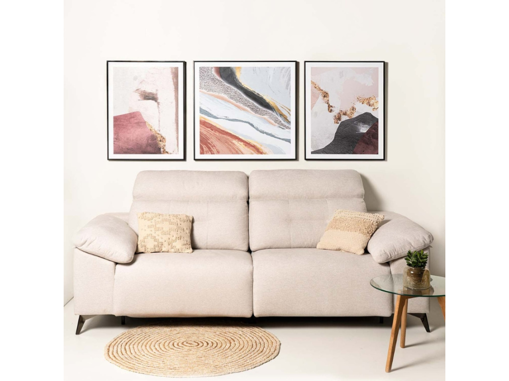 Obraz Terra od španělské značky Somcasa představuje stylový doplněk do domácnosti v abstraktním pojetí. Pozornost zaujme zlatá barva, která obraz decentně doplňuje a dodává mu nádech luxusu a elegance. Obraz Terra nejlépe vynikne s obrazy ze stejné kolekce, které spolu tvoří vyladěný triptych. Díky kovovým háčkům ho snadno a pohodlně pověsíte kamkoliv na zeď.