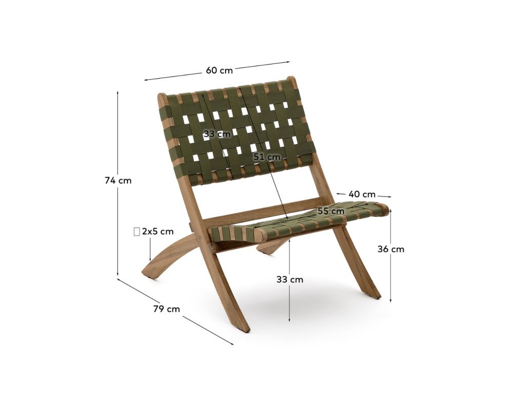 Akátové skládací zahradní křeslo Kave Home Chabeli se zeleným výpletem