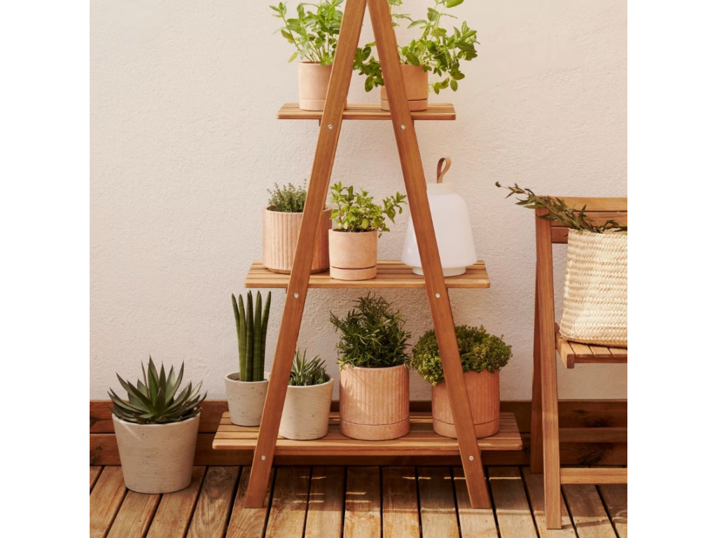 Stojan Kave Home Victora z akátového dřeva skvěle poslouží nejen k vystavení květináčů, použít ho můžete také jako regál. Díky použitému nátěru je dřevo odolné vůči UV záření a je tak prodloužena jeho životnost. Využít ho můžete nejen v exteriéru, skvěle se hodí také do interiérů, ve kterých převládají přírodní materiály. Victora nabízí úložný prostor v podobě tří polic, které se můžou hodit také třeba k uspořádání zahradnických potřeb a doplňků. No řekněte – že tenhle praktický stylový kousek nutně potřebujete? Navíc ho můžete doplnit dalšími úložnými prostory ze série Victora.