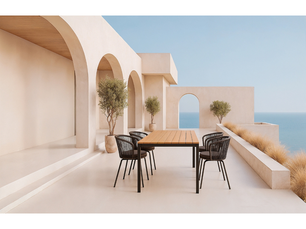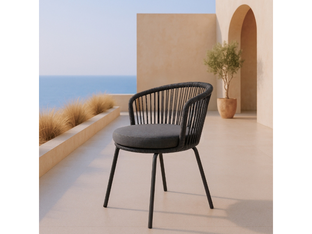 Zahradní židle Vilma v antracitovém odstínu propojuje eleganci s maximálním komfortem pro chvíle odpočinku pod širým nebem. Měkký polstrovaný sedák z tmavě šedé látky a opěrka s výpletem z odolné šňůry tvoří jemně zaoblený tvar, který přímo vybízí k usednutí. Ocelová konstrukce s povrchovou úpravou pro venkovní použití zajišťuje perfektní stabilitu i dlouhou životnost. Vilma skvěle zapadne do moderních, boho i rustikálních exteriérů – ať už na terase, balkoně nebo v zahradě.