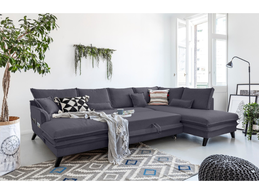 Design rozkládací pohovky Charming Charlie od značky Miuform vnese do vašeho obývacího pokoje špetku elegance a boho stylu. Její příjemné čalounění ze strukturované látky v antracitově šedém odstínu dodává pohovce moderní a zároveň minimalistický vzhled. V případě potřeby se dá tato pohovka jednoduše rozložit na pohodlné lůžko pro 2 osoby. Příjemným bonusem jsou i kapsy na boční straně pohovky, díky kterým získáte praktickou úschovnu pro váš ovladač či oblíbenou knížku. Nechte se okouzlit tímto nadčasovým kouskem, který nabízíme v dalších barvách a provedeních! Doporučujeme ji kombinovat s dalším nábytkem z řady Charming Charlie.