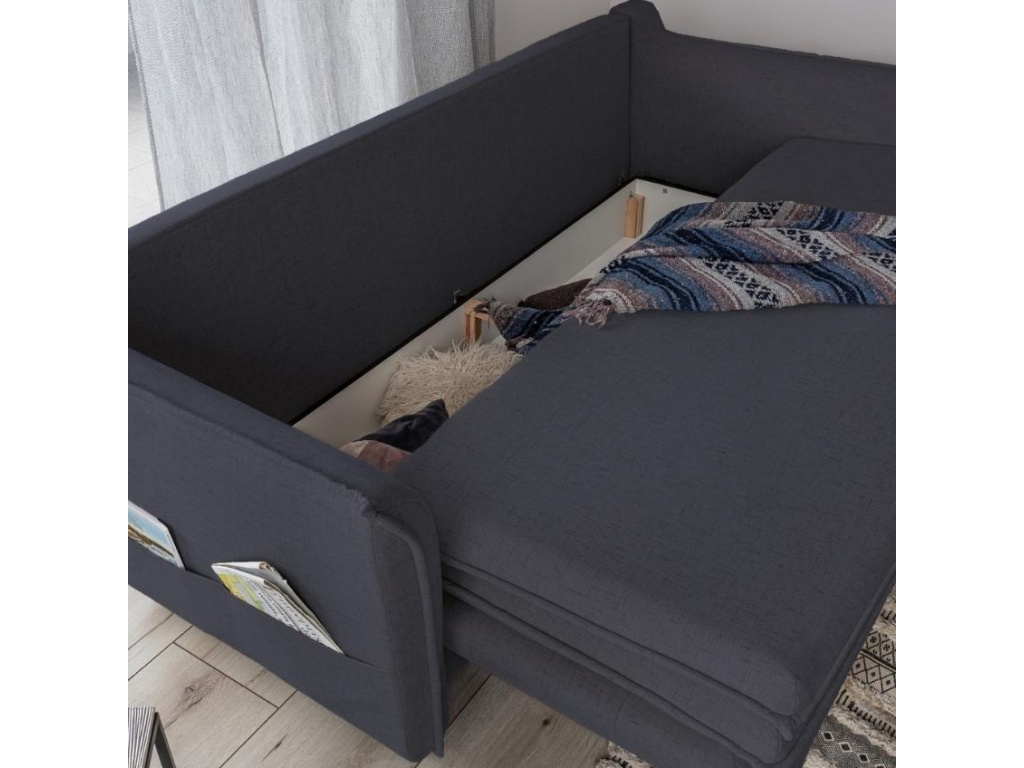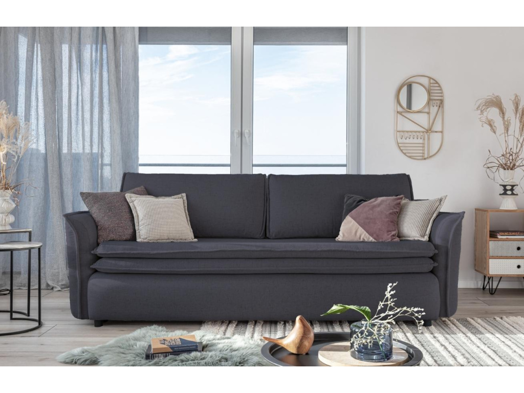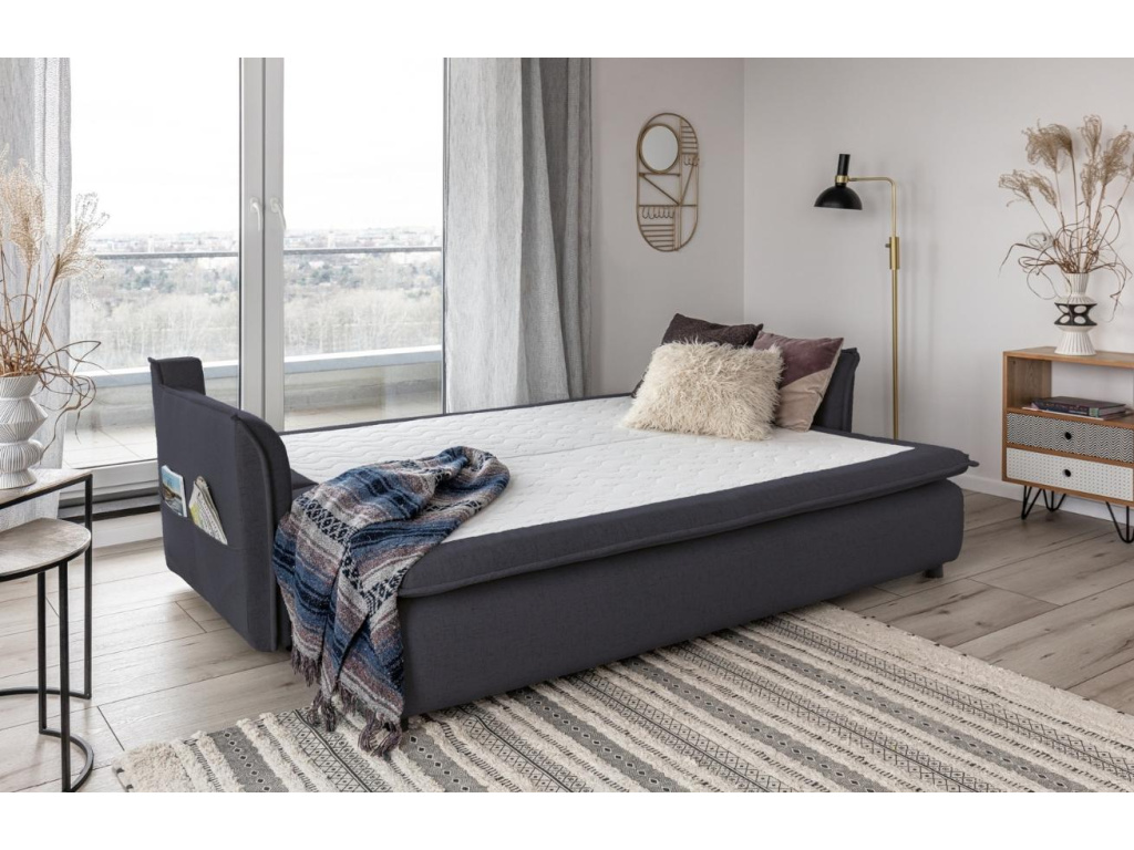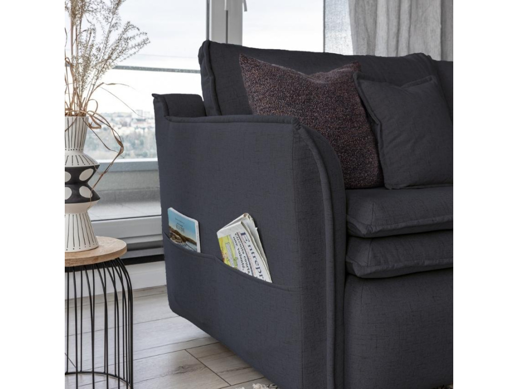 Stylová třímístná rozkládací pohovka Charming Charlie od značky Miuform vás zaujme již na první pohled svým netradičním designem. Příjemné čalounění ze strukturované látky v tmavě šedém odstínu dodává pohovce moderní a zároveň efektivní vzhled. Inovativní použití povrchové matrace, která je nedílnou součástí pohovky, zajišťuje vysoký komfort spánku. Příjemným bonusem jsou kapsy na boční straně křesla, díky kterým získáte praktickou odkládací plochu pro váš ovladač či oblíbenou knížku. Pohovka se díky 90.000 martindale cyklům skvěle hodí nejen do moderních interiérů, ale také do komerčních prostor jako jsou hotelové lobby apod. Nechte se okouzlit pohovkou Charming Charlie. Doporučujeme kombinaci více prvků z řady Charming Charlie.