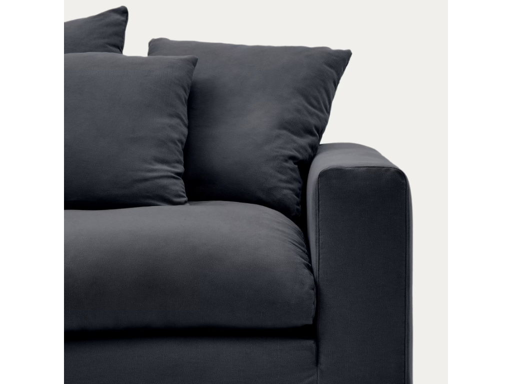 Série pohodlného funkčního nábytku Nora od Kave Home vám zaručeně pomůže zútulnit váš domov. Čalouněná trojmístná pohovka disponuje praktickým odnímatelným potahem, který můžete v případě znečištění kdykoliv vyprat. O vaše pohodlí se postará také celkem 6 dekorativních polštářů, v jejichž výplni najdete měkké pěnové odřezky a recyklovaná PET vlákna. Díky potahu ze směsi bavlny a lnu s sebou pohovka přinese nádech přírody a skvěle tak zapadne do rustikálních, scandi i boho interiérů. Vychutnejte si díky tomuto stylovému kousku vaše chvilky relaxu a slaďte pohovku s ostatními kousky ze stejnojmenné kolekce.
