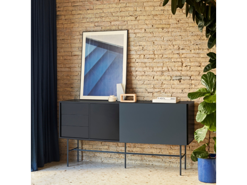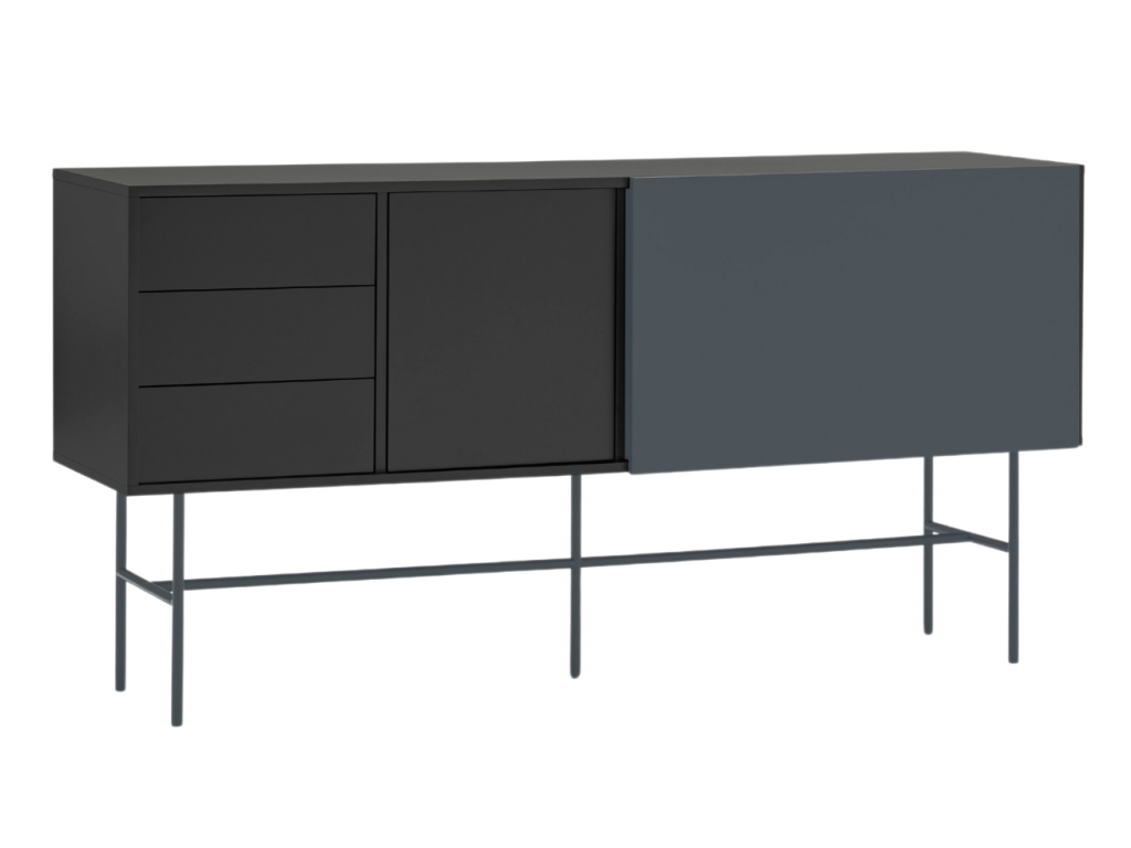 Hledáte minimalistickou komodu s bohatým úložným prostorem? Moderní komoda Nube od španělské značky Teulat vás oslní elegantním designem i praktickým uspořádáním věcí. Designová komoda v antracitově šedé a černé barvě se skládá ze 3 šuplíků, 2 polic skrytými za dvířky a 4 polic, které můžete zakrýt posuvnými dveřmi. Ať už se tak rozhodnete využít úložný prostor na cokoliv, můžete se spolehnout na diskrétní ukrytí vašich pokladů před zraky ostatních. Díky bezúchytkovému provedení vyniknou jednoduché a čisté linie komody. Praktický systém Push to open zase zajistí, že zásuvky a dvířka snadno otevřete i bez úchytek. Použité lakované MDF vás jistě potěší snadnou údržbou a vysokou odolností. Nelze opomenout ani šedou kovovou podnož, díky které budete mít věci hezky po ruce bez zbytečného ohýbání. Komodu nabízíme ve třech barevných provedeních.