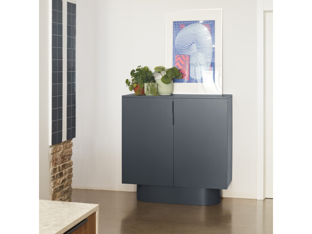 Hledáte elegantní minimalistické řešení úložných prostor? Série Totem od značky Teulat bude skvělou volbou! Najdete v ní komody, TV stolek i noční stolek – vše vzniklo v designovém studiu PerezOchando a každý z kousků si můžete pořídit v béžovém i antracitovém zbarvení. Vyšší komoda o šířce 110 cm přinese do interiéru úložný prostor v podobě 6 polic ukrytých za dvojicí dvířek, která disponují systémem zavírání soft close – ať už komodu využijete na oblečení, nádobí nebo cokoliv jiného, vše bude spolehlivě ukryto před zraky vašich návštěv. Použité lakované MDF navíc potěší snadnou údržbou a vysokou odolností. Vpusťte tuto stylovou sérii do vašeho moderního minimalistického interiéru, zaujme především zajímavě řešenou podnoží, která má podobu vyvýšeného centrálního podstavce.