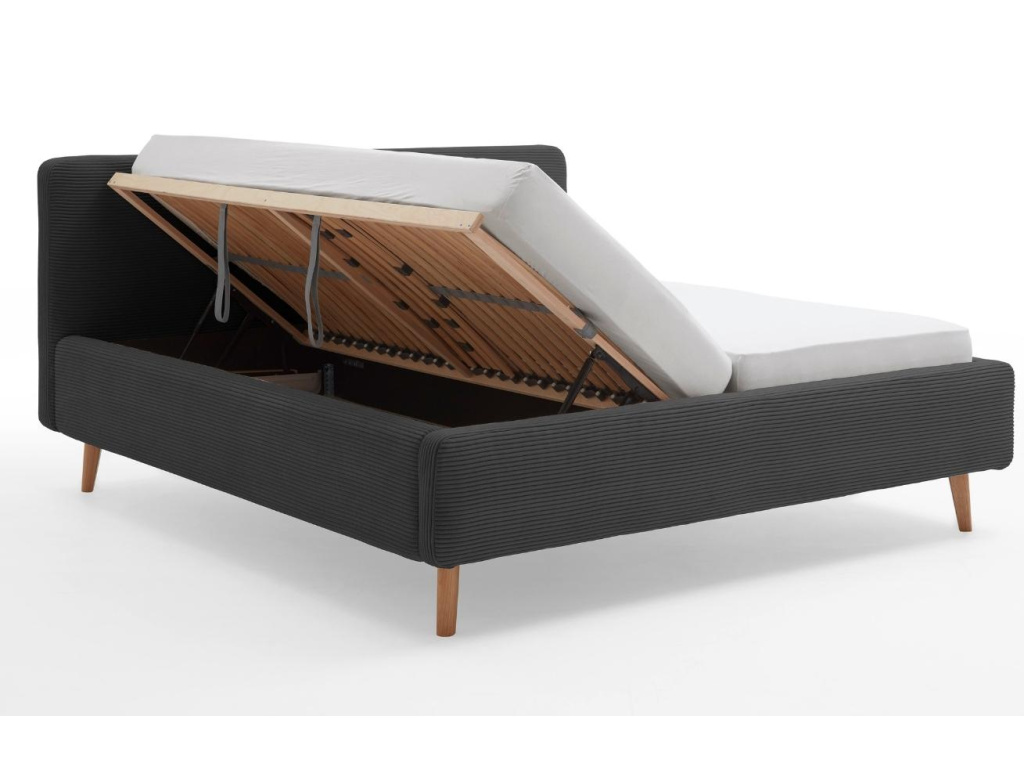 Vyberu siAntracitově šedá manšestrová dvoulůžková postel Meise Möbel Mattis 180 x 200 cm s úložným prostorem