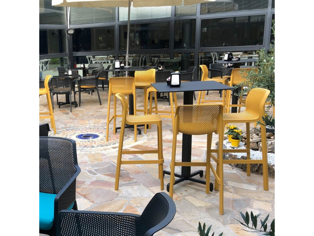 Díky použitému odolnému materiálu oceníte moderní zahradní barovou židli Net nejen v interiéru, ale také na vaší terase či zahradě. Jednoduché barevné provedení a působivý design dělá z židle nadčasový kousek, který rozhodně neomrzí. Je dostupná v několika barevných variantách a doplnit ji můžete nábytkem ze stejné kolekce. Užívejte si komfort a styl barové židle Net jak u vás doma, tak i v komerčních prostorech.