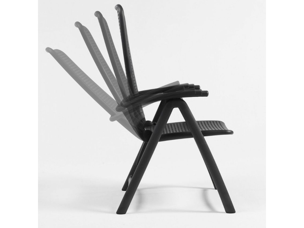 Antracitově šedá zahradní polohovatelná židle Darsena si vás získá pro své praktické vlastnosti a pohodlné sezení. Židle je vyrobená z odolného polykarbonátu, navíc vyztuženým skelným vláknem a má zvýšenou odolnost proti UV záření a protiskluzovou podnož. Při relaxaci na vaší zahradě či terase oceníte možnost nastavení až čtyř poloh zádové opěrky. Při úklidu vás potěší, jak málo místa židle po složení zabere.