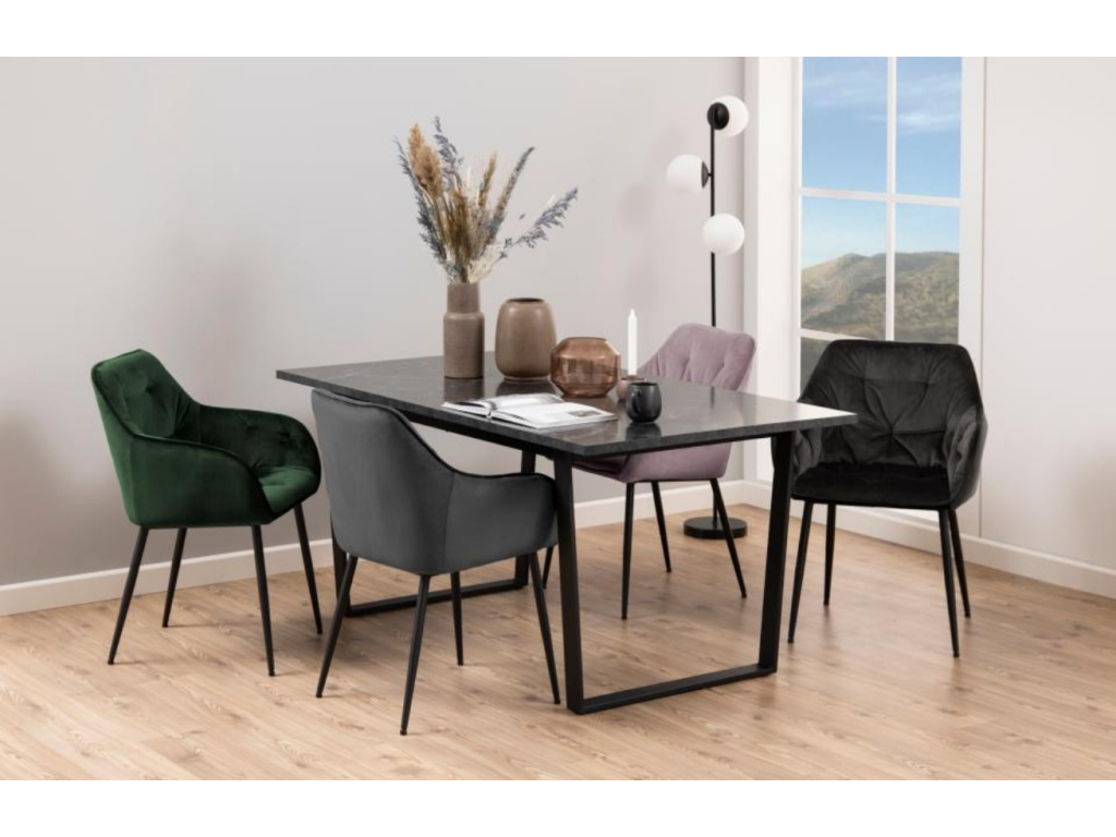 Elegantní jídelní židle Norman zaujme svým okouzlujícím designem. Černě lakovaná kovová podnož a příjemný sametový sedák s prošíváním zajišťují maximální pohodlí a prožitek z posezení. Židle bude klenotem každého moderního i klasického interiéru.
