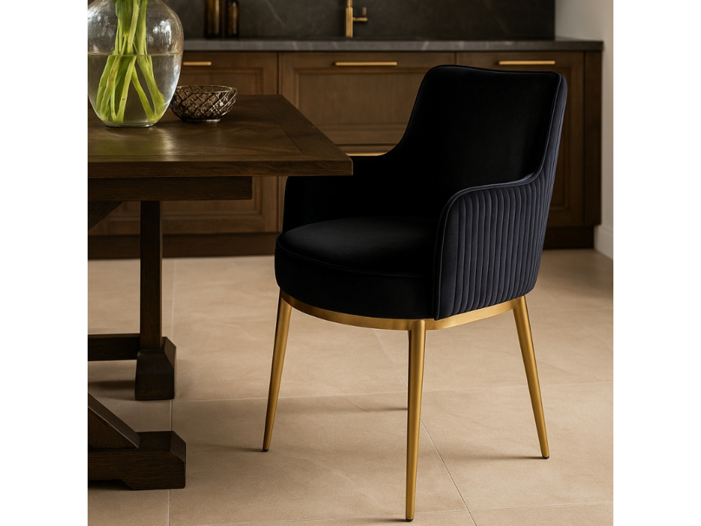 Jídelní židle Richmond Breeze vás oslní svou elegancí. Ta je zajištěna nejen spojením antracitově šedé a zlaté barvy, ale také jemným prošíváním, kterým je ozdobena vnější strana jejího opěradla. Posezení na židli je díky sametovému čalounění a vysokým područkám velice pohodlné a vy si tak vaše jídlo můžete ještě o kousek více užít.