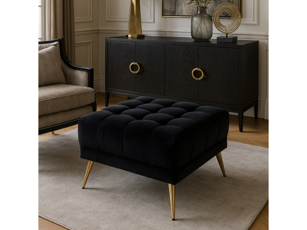 Podnožka Richmond Huxley zaujme svým elegantním designem, který skvěle doplní křeslo ze stejné kolekce. Její čalounění je tvořeno velice příjemnou sametovou látkou a je ozvláštněno výrazným čtvercovým prošíváním. Podnožka stojí na vyšší podnoži z lakovaného kovu, která vyniká svou zlatou barvou. Skvěle zapadne do moderně laděných interiérů a stane se jejich výraznou ozdobou.