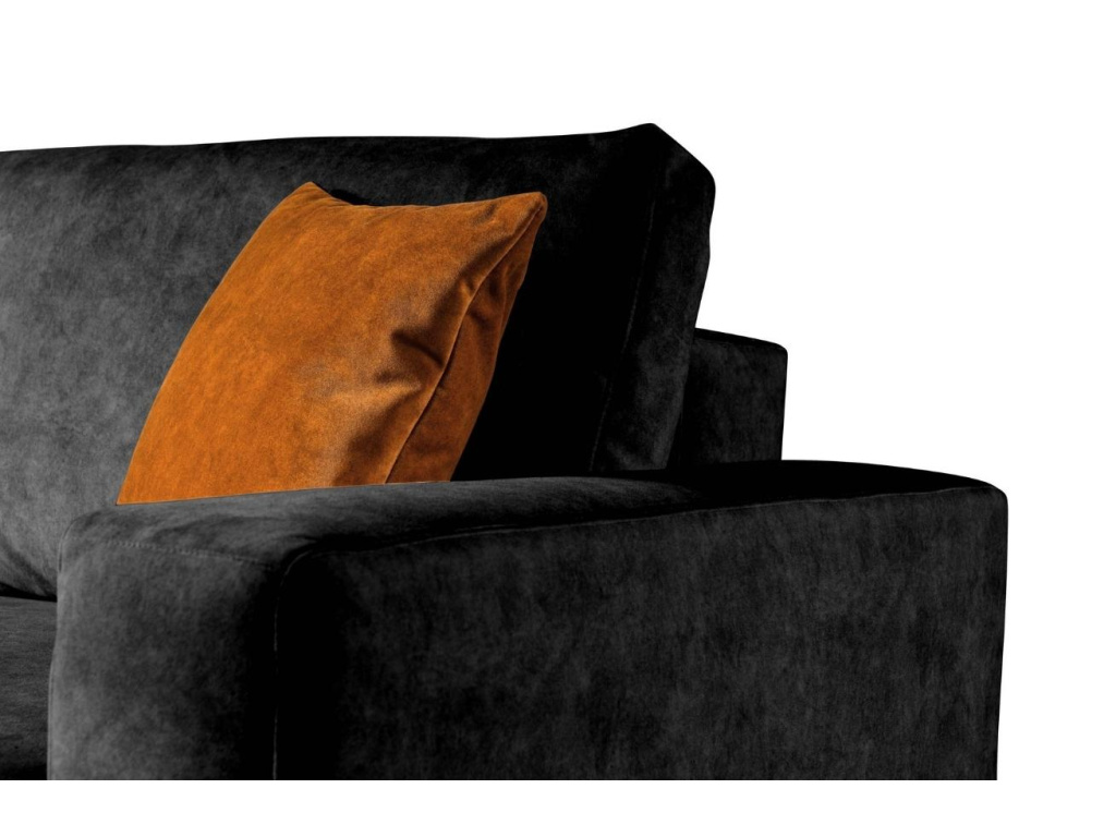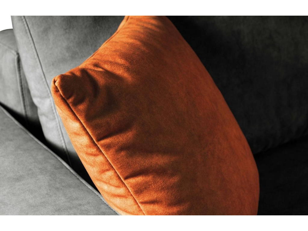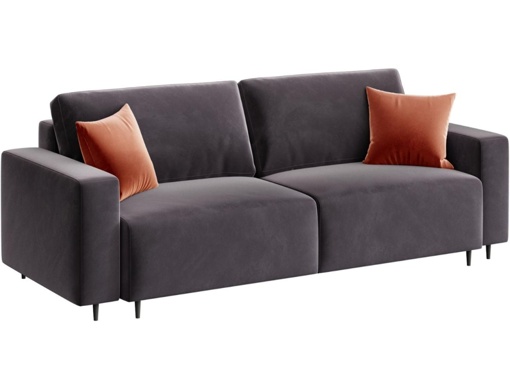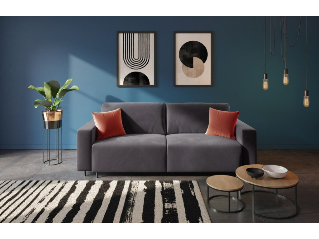 Třímístná pohovka Hesto je výrazný kus nábytku, který v sobě spojuje jednoduchost a eleganci. Robustní sedák pohovky kontrastuje se štíhlými nohami a vytváří ucelenou a vizuálně vyváženou kompozici. Díky použití extra silné pěnové vrstvy v sedací části poskytuje pohovka uživateli pohodlí a umožňuje vychutnat si komfort. Příjemné sametové čalounění v antracitově šedé barvě designově kontrastuje s polštářky v červeném odstínu, díky čemuž získává originální design. Kromě toho byla pohovka rozšířena také o rozkládací funkci. Sklápěcí opěradla a výsuvná část sedáku umožňují rychlou přeměnu pohovky na pohodlné lůžko. Hesto se skvěle hodí do interiérů v elegantním stylu a do moderních interiérů. Její neokázalý charakter z ní činí zajímavý interiérový doplněk.