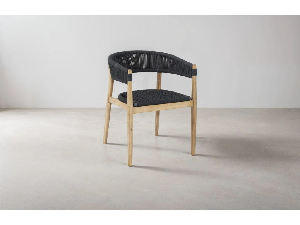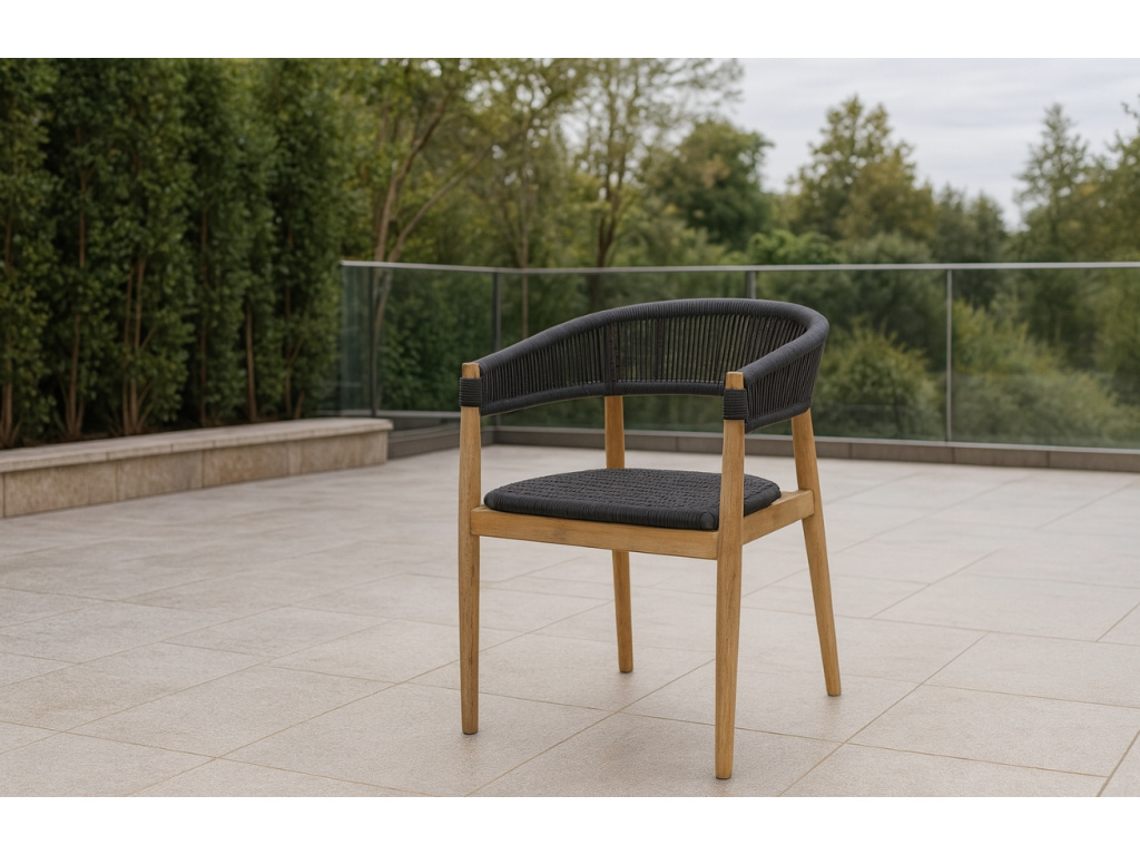 Zahradní židle Miara od značky Micadoni přináší dokonalou rovnováhu mezi přirozenou estetikou a moderní funkčností. Kombinace masivního akáciového dřeva v teakovém odstínu a ručně tkaného lana v elegantní antracitové či béžové barvě vytváří harmonický celek, který zaujme na pohled a potěší při každém posezení. Výplet je prodyšný, příjemný na dotek a zároveň dostatečně pevný. Mírně zakřivené opěradlo přirozeně kopíruje tvar zad a poskytuje pohodlnou oporu i při delším sezení. Každý detail z ní dělá výjimečný kousek, který v sobě spojuje uvolněnou atmosféru venkovního života s promyšleným designem.