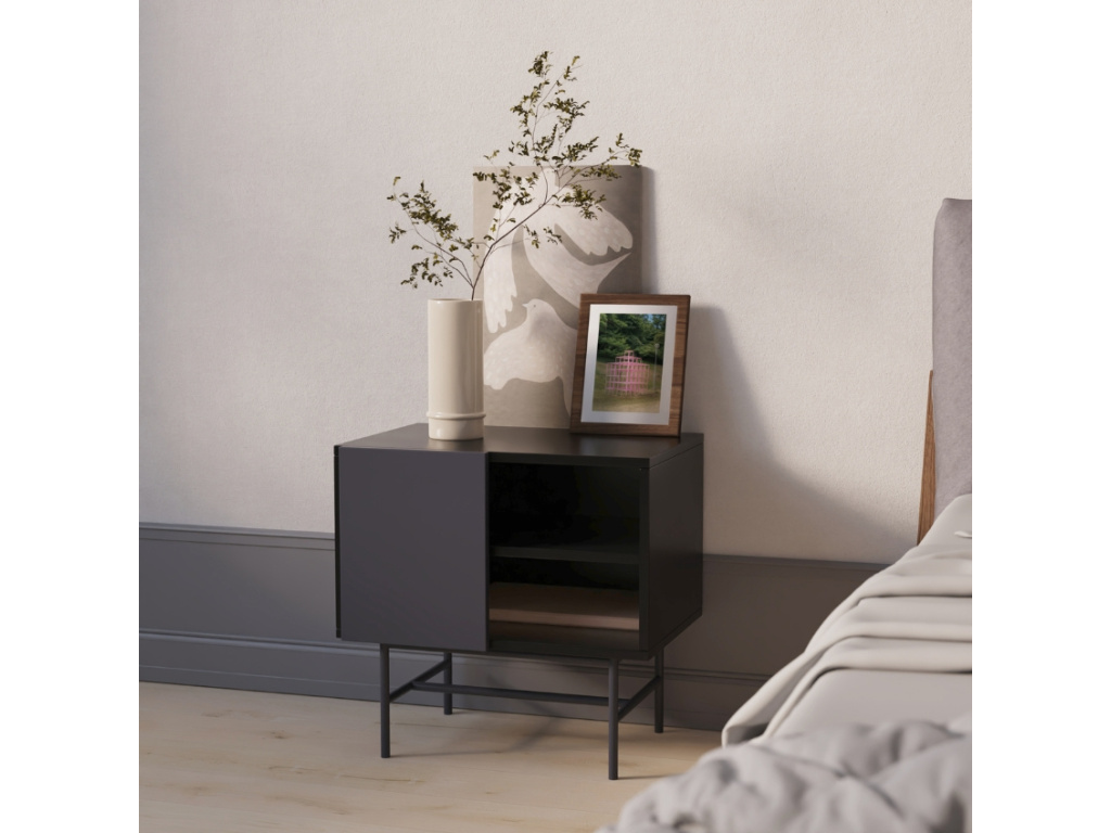 Minimalistický noční stolek Nube od španělské značky Teulat vás oslní elegantním designem i praktickým uspořádáním věcí. Úložný prostor stolku je tvořen dvojicí prostorných polic, které můžete zakrýt posuvnými dvířky. Ať už se tak rozhodnete využít úložný prostor na cokoliv, můžete se spolehnout na diskrétní ukrytí vašich pokladů před zraky ostatních. Díky bezúchytkovému provedení vyniknou jednoduché a čisté linie stolku. Použité lakované MDF vás jistě potěší snadnou údržbou a vysokou odolností. Stolek, stejně jako další komody a TV stolky ze série Inari, nabízíme ve třech různých barevných provedeních.