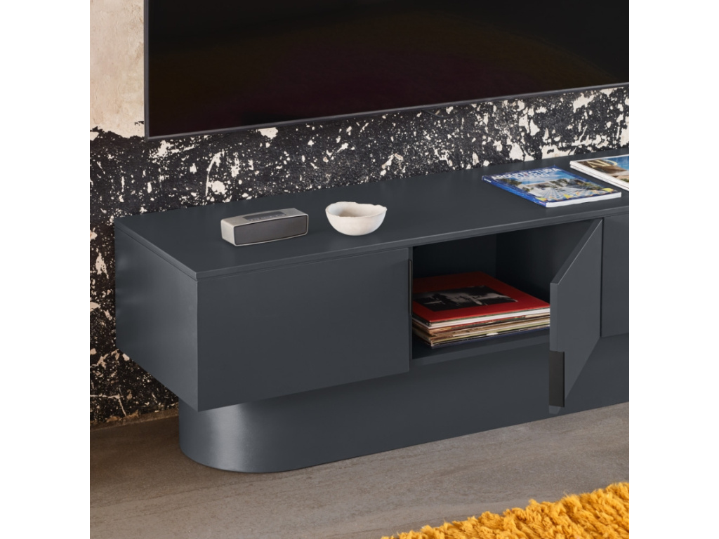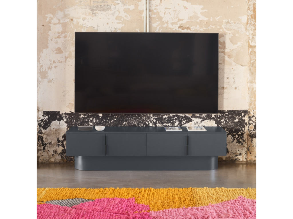 Antracitově šedý lakovaný TV stolek Teulat Totem 200 x 47 cm