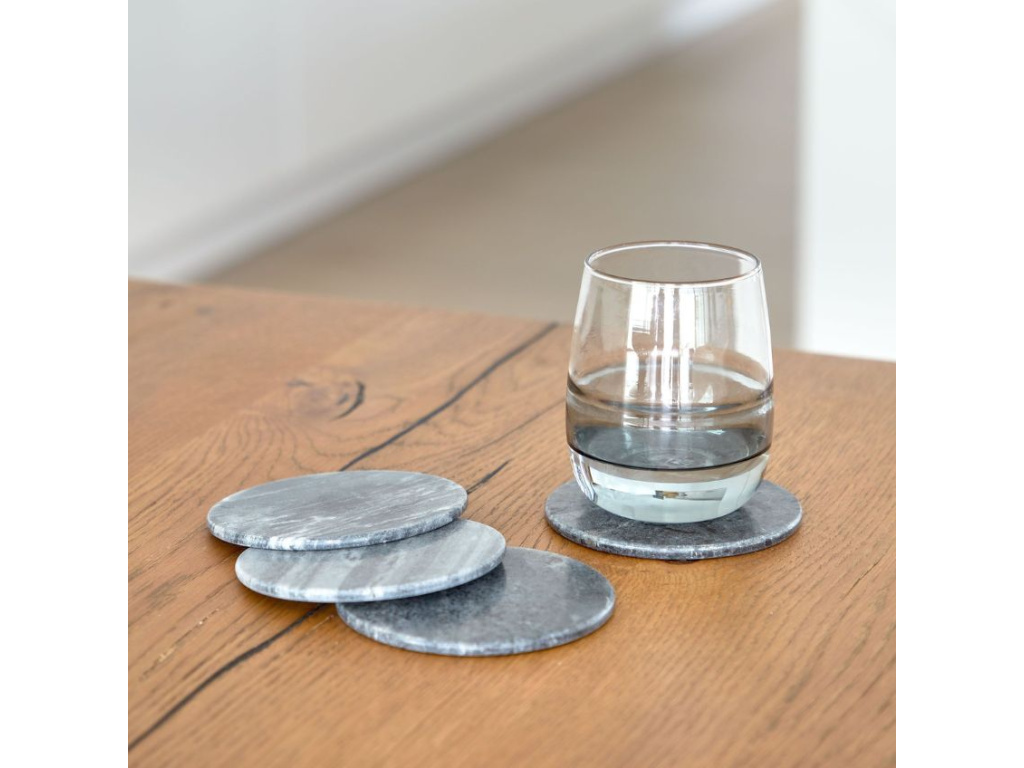 Antracitově šedý mramorový set čtyř kulatých podtácků Kave Home Tresa