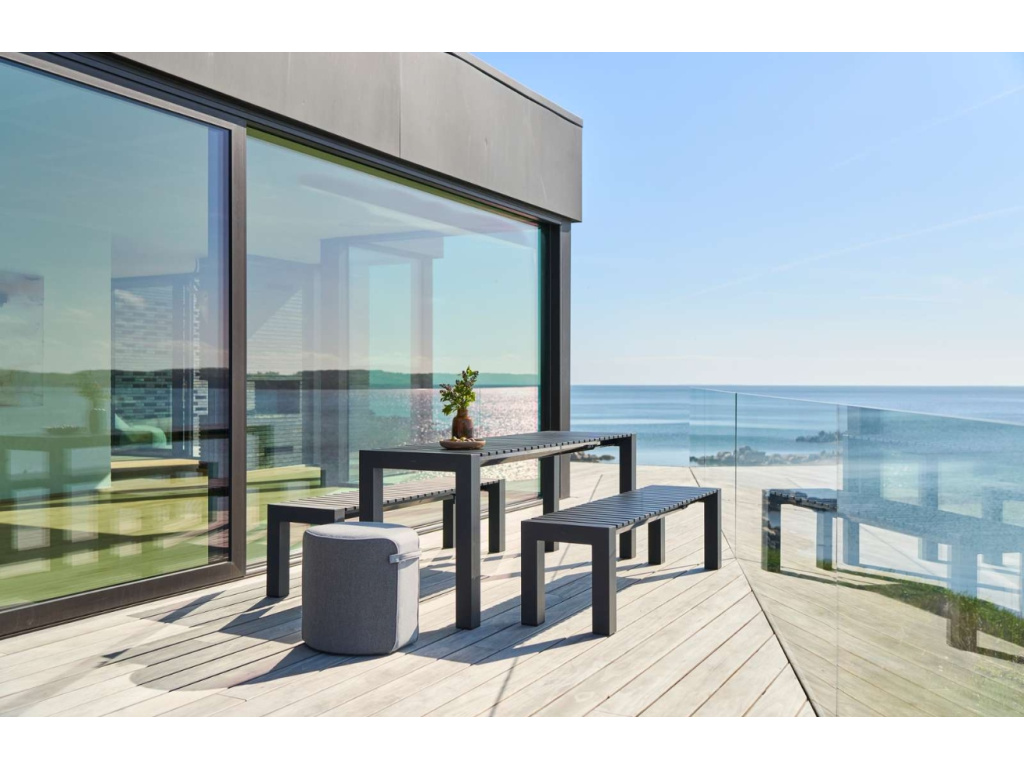 Moderní a jedinečné provedení stolu Mindo 111 se netají tím, že na sebe upoutá veškerou pozornost na vaší zahradě, terase a nebo balkonu. Stůl je navržen pro malé i velké prostory, a to díky možnosti stůl roztáhnout až o dalších 37 cm. Tím získáte další prostor k sezení a stolování. Celohliníková konstrukce je zárukou lehkosti a odolnosti, takže stůl skvěle splňuje náročné venkovní podmínky i nároky na údržbu. Pokud ale pro vás tato velikost není tou pravou volbou, máme pro vás i robustnější verzi stolu Mindo 111. Řada Mindo 111 vznikla pod taktovkou designéra Jespera K. Thomsena. Nenechte si ujít další designové kousky z této řady.