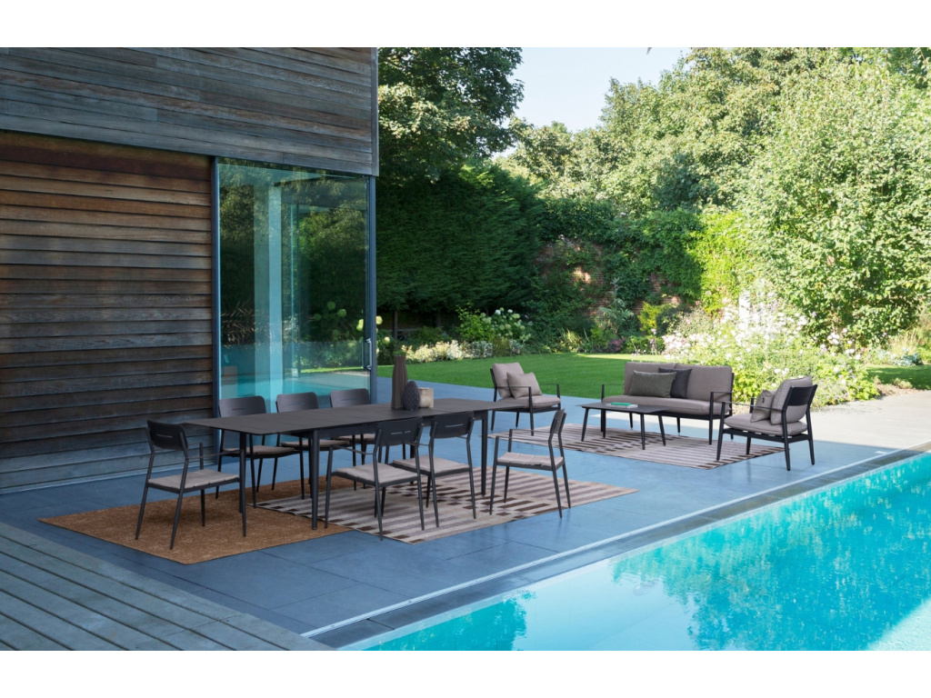 Set zahradního nábytku Nebula promění vaši terasu v dokonalé místo k relaxaci i setkání s přáteli. Čisté linie a minimalistický design podtrhnou moderní atmosféru exteriéru. Pohodlné polštáře s vodoodpudivou úpravou vás příjemně obejmou a poskytnou vám maximální komfort. Odolná hliníková konstrukce v antracitově šedé barvě zajistí dlouhou životnost a snadnou údržbu. Konferenční stolek nabízí dostatek prostoru pro servírování nápojů i oblíbených dobrot. Tento set vytvoří ideální místo pro dlouhé letní večery venku.