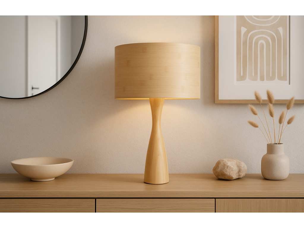 Přírodní bambusová stolní lampa Lacia je moderním a velmi stylovým osvětlením se stínidlem klasického tvaru. Podstava i stínidlo je vyrobeno z bambusového dřeva v přírodním odstínu a výborně doladí moderní i klasické interiéry. Designová podstava je elegantně zúžena a krásně ladí s dřevěným stínidlem, které svým mírným světlem vytvoří ve vašem pokoji příjemnou atmosféru. Lampa se skvěle hodí do světlých interiérů s důrazem na přírodní prvky.