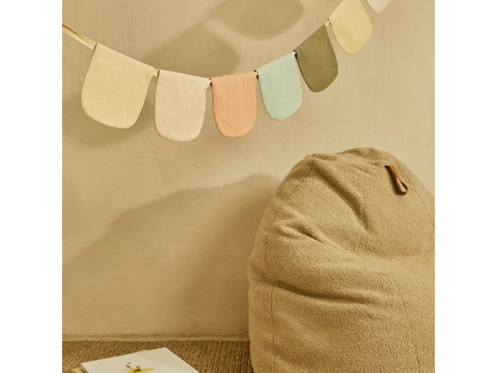 Rozveselte dětský pokoj touto girlandou z barevných praporků, která vnese do interiéru hravou atmosféru plnou fantazie. Je vyrobená ze 100% bavlny, takže je lehká i zároveň odolná. Celková délka je 250 cm a jednotlivé praporky můžete nastavit podle vašich potřeb. Girlanda se skvěle hodí nad postýlku, do okna nebo jako dekorace na stěnu, kde vykouzlí útulný a hravý prostor. Vyberte si z několika krásných barevných variant!