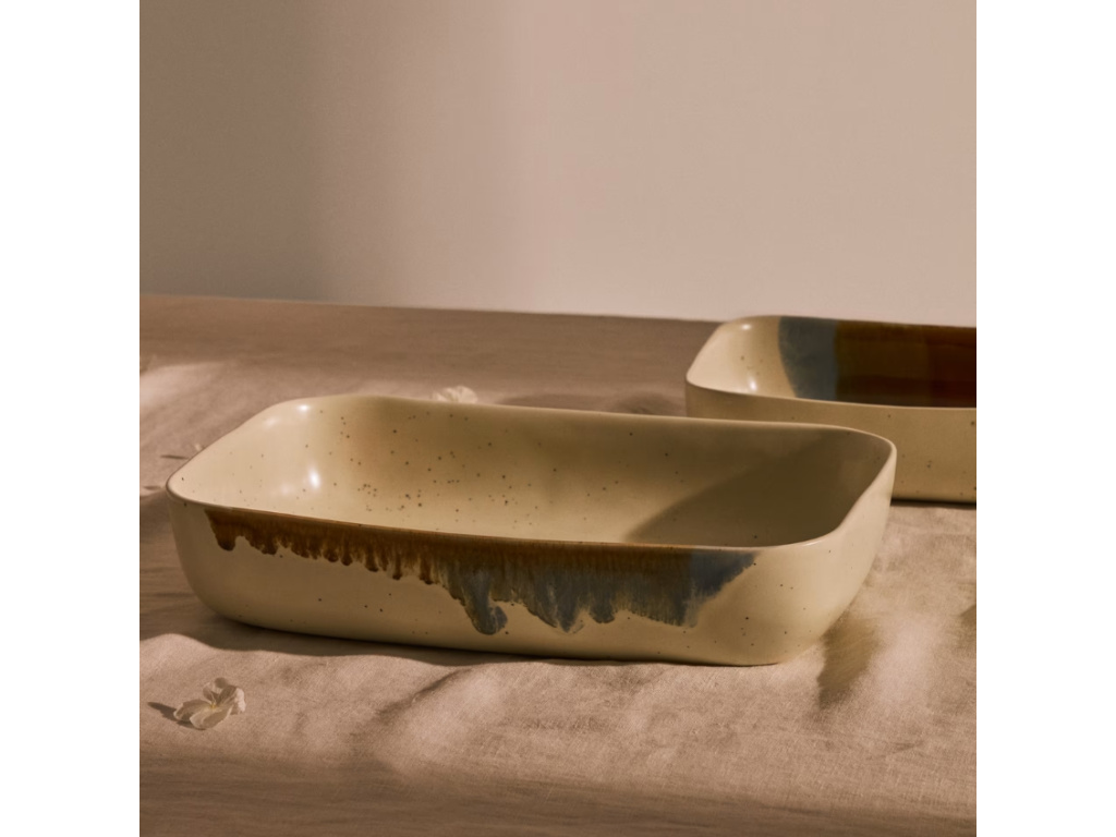 Keramické nádobí ze série Kave Home Miglo vás uchvátí spojením bílé, modré a hnědé barvy. Díky procesu smaltování je každý kousek jedinečný a pyšní se vlastními odstíny a texturami. V sérii najdete misky, zapékací mísy i talíře a džbány – váš prostřený stůl tak může být krásně sladěný. Miglo svým elegantním designem každý stůl ozdobí a požitek z jídla bude díky němu ještě o kapku větší.