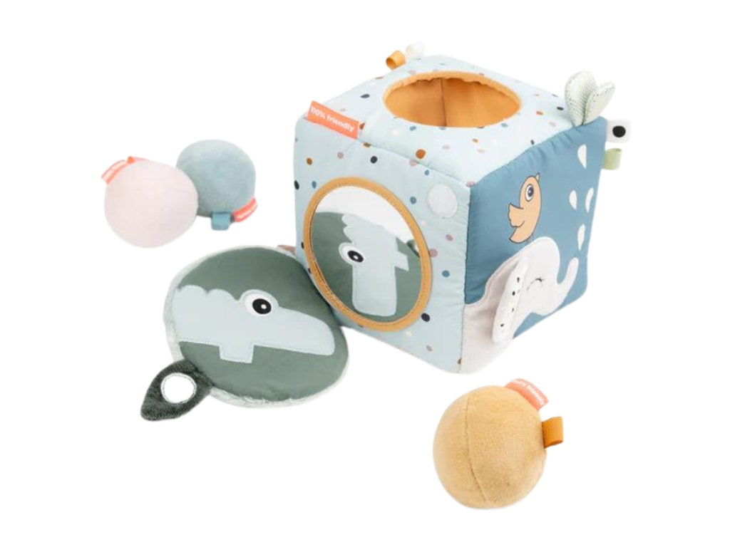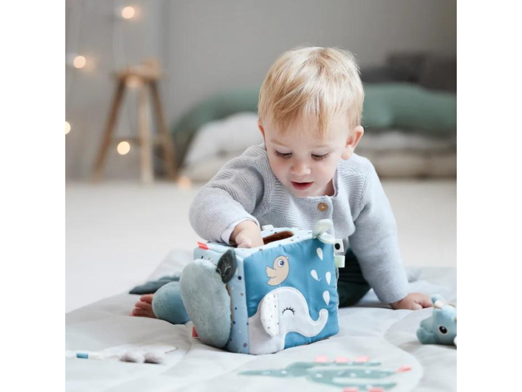 Zábavná kostka s různými aktivitami Done by Deer Friends bude bavit každého malého raubíře. Vzdělávací hračka pomůže dětem rychleji poznávat a lépe pochopit celý svět. Jemné pastelové barvy a různě strukturované látky budou bavit děti od 6 měsíců.