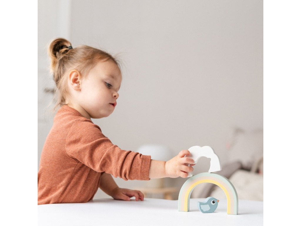 Skládací hračka Done by Deer Birdee je ideální doplněk pro nápaditou hru a řešení hádanek. Roztomilé tvary může váš drobeček skládat jako puzzle, stavět na sebe, zkoušet vyvažování a vymýšlet různé příběhy, které budou rozvíjet jeho představivost. Skládačka s veselými pastelovými barvami bude zároveň sloužit jako krásný dekorativní prvek v dětském pokoji.
