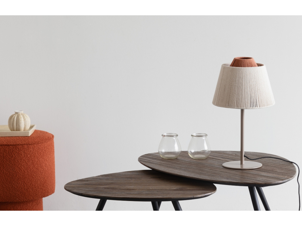 Stolní lampa YUMI od značky White Label Living dodá vašemu interiéru jedinečný charakter i vintage atmosféru. Stínidlo lampy je vyrobeno z bavlněných nití ve třech různých barvách, které spolu zajímavě kontrastují. Tato barevná kombinace vytváří jedinečný vzhled lampy i prostoru, ve kterém je umístěna. Stabilitu zajišťuje lakovaná kovová podstava v neutrální béžové. Světlo, které vytváří, je teplé a hřejivé a příjemně prozáří celý pokoj. Tato designovka s retro nádechem se hodí i moderních interiérů, kde bude nepřehlédnutelnou dekorací.