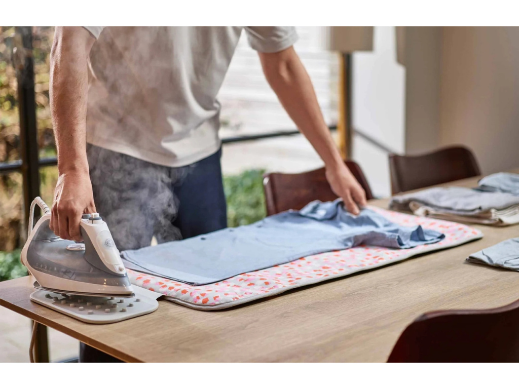 Objevte praktického pomocníka pro rychlé a elegantní žehlení – žehlící podložku Swift, kterou nabízíme ve dvou stylových provedeních! Tato kompaktní podložka promění jakýkoli rovný povrch – stůl, desku nebo prádelní stůl – na plnohodnotnou žehlící plochu během okamžiku. Díky vícevrstvé DripLock technologie je odolná vůči vysokým teplotám až do 200 °C a vlhkosti páry, což zajišťuje bezpečné a efektivní použití i při náročnějším žehlení. Sklápěcí protiskluzovou silikonovou plochu využijete pro odložení žehličky mezi jednotlivými úkony, přičemž nehrozí poškrábání povrchu nebo sklouznutí a praktické závěsné poutko vám umožní napařování prádla ve svislé poloze – stačí pověsit na dveře nebo nástěnný držák a začít žehlit.