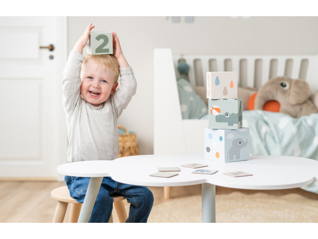 Nechte vaše nejmenší se rozvíjet a objevovat svět za pomoci stohovacích kostek Deer friends od značky Done by Deer. Barevné kostky mají na každé straně jiný typ ilustrace. Pro nejmenší je důležité naučit se poznávat zvířátka a barvy, pro větší raubíře je na místě trénink počítání a stavění stabilní věže a pro předškoláky kostky skrývají základní číslice.
