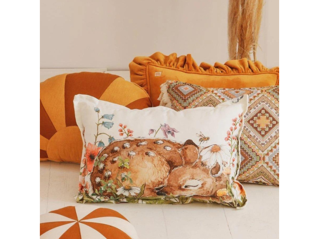 Měkoučký polštář Doe od značky Moi Mili bude ideálním doplňkem k dětskému teepee Wildflowers. Povlak polštáře je vyroben ze 100% bavlny s certifikátem OEKO-TEX® a výplň je složena z měkkých kuliček z antialergického silikonového vlákna. Barevný zvířecí motiv si získá srdce každé dětské dušičky. Polštářek bude krásným doplňkem nejen do teepee, ale kamkoliv do dětského pokoje.