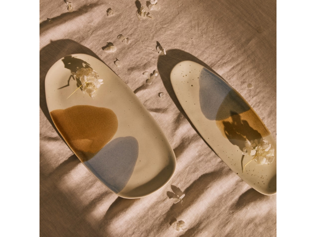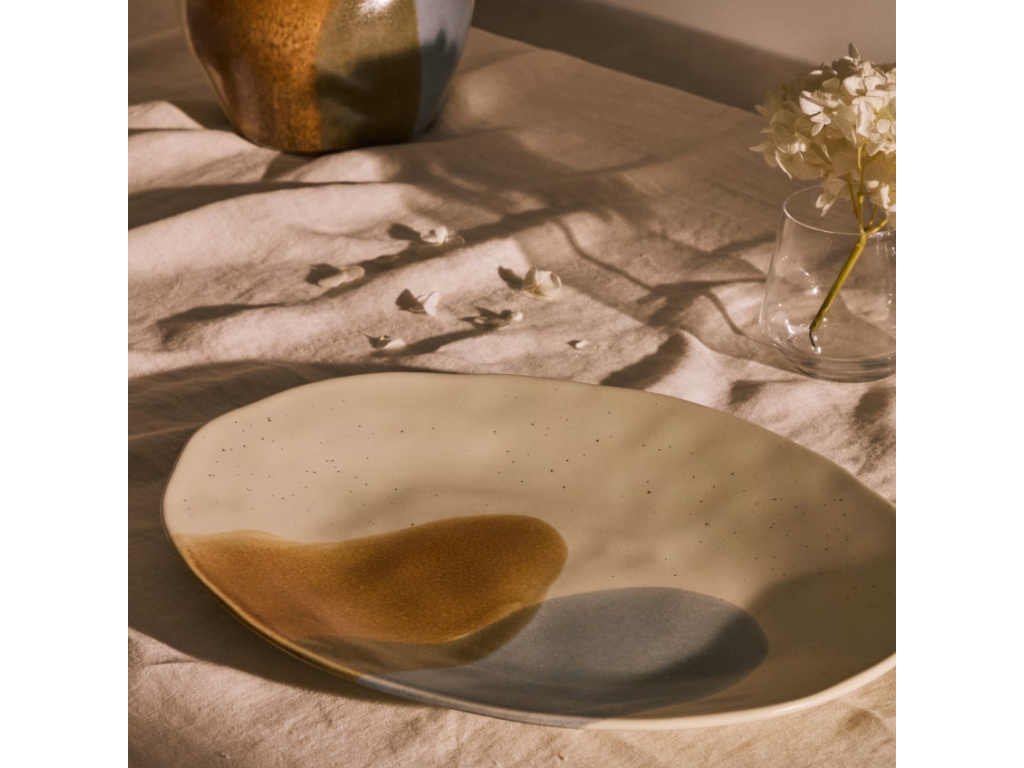 Keramické nádobí ze série Kave Home Miglo vás uchvátí spojením bílé, modré a hnědé barvy. Díky procesu smaltování je každý kousek jedinečný a pyšní se vlastními odstíny a texturami. V sérii najdete misky, zapékací mísy i talíře a džbány – váš prostřený stůl tak může být krásně sladěný. Miglo svým elegantním designem každý stůl ozdobí a požitek z jídla bude díky němu ještě o kapku větší.
