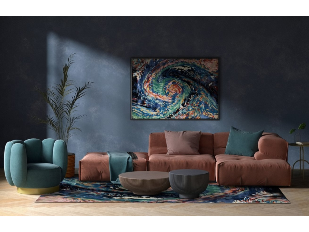 Designový koberec Flores od značky Fargotex se stane středobodem a útočištěm ve vašem domově. Připomíná totiž abstraktní umělecké dílo s impresionistickými prvky s pestrými shluky barev, jež dodají svěží a atraktivní vzhled jakékoliv místnosti. Koberec je ručně vyroben ze směsi viskózy a vlny, díky kterým disponuje vysokou kvalitou i odolností. Skvěle zapadne do interiéru, kde hrají hlavní roli barvy, ale bude mu to slušet i v čistém minimalistickém prostoru, kam vnese jedinečný kontrast. Umístěte jej pod konferenční stolek nebo jídelní stůl a kochejte se touto neotřelou designovkou!