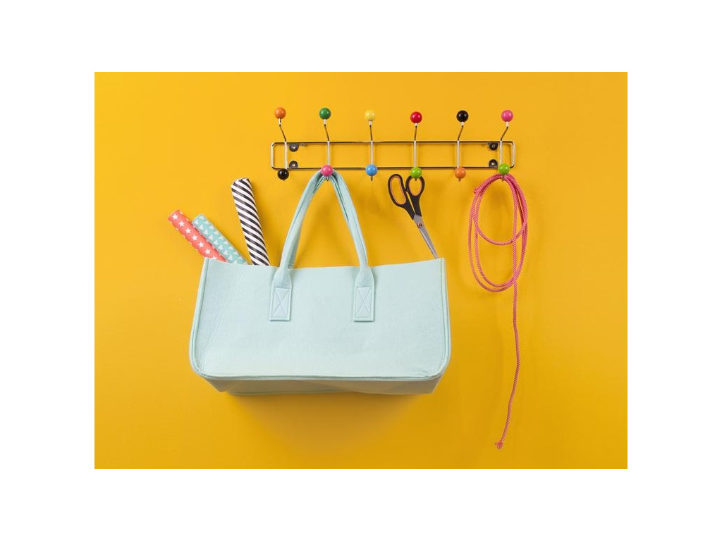 Designový nástěnný věšák Arfus III. v chromovaném provedení, kde jsou na místo klasických háčků použity barevné kuličky. Díky několika barevným kombinacím je široká možnost umístění. Například do předsíně, ložnice, haly i dětského pokoje.