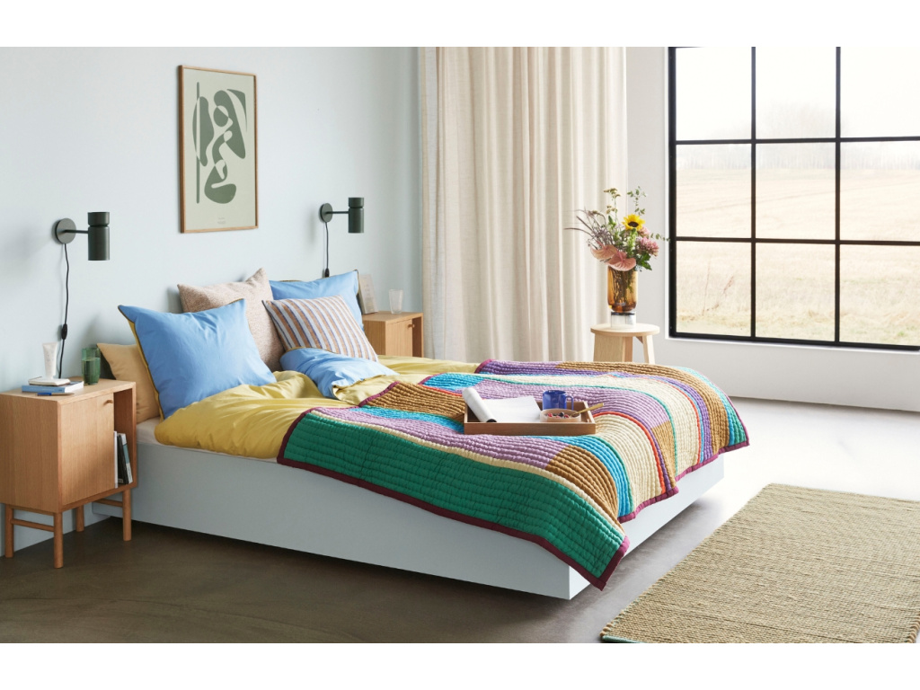 Pléd Pavilion vás upoutá svým hravým vzorem a veselými barvami, které si ihned zamilujete! Jeho přední strana je zdobena výraznými barvami a zadní strana je v nádherné burgundy barvě. Pléd můžete využít jako přehoz na postel nebo se do něj zachumlat na pohovce či v křesle. Užijte si chladné večery s tímto kouskem od dánské značky Hübsch.