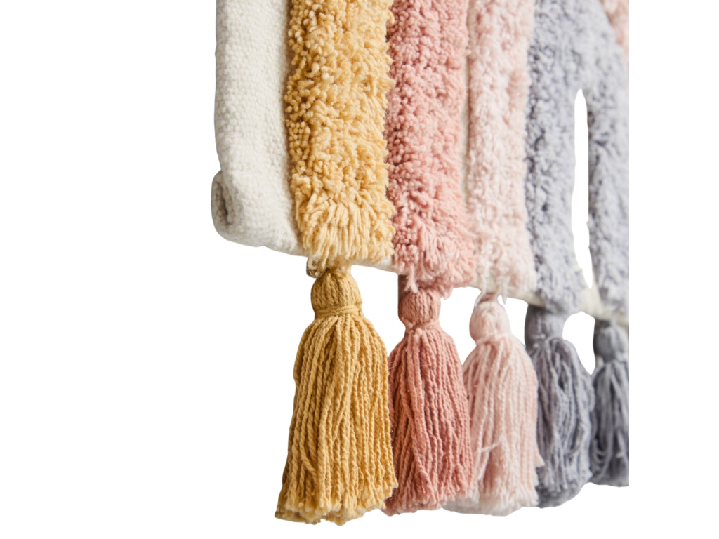 Proměňte stěny dětského království v galerii plnou fantazie s ručně tkanou dekorací Tadea. Tato bavlněná duha v tlumených pastelových barvách vnáší do prostoru vizuální teplo a texturu, která skvěle doplňuje interiéry v oblíbeném boho nebo skandinávském stylu. Je to ideální detail pro vytvoření útulného a inspirativního prostředí, kde se sny stávají skutečností.