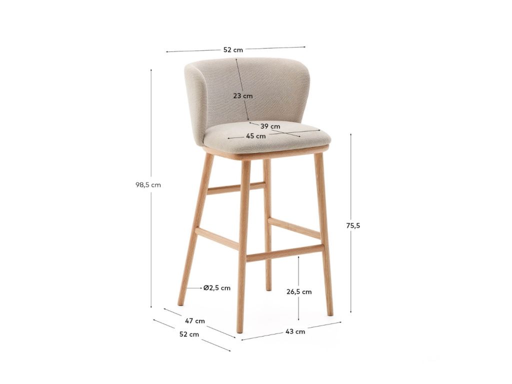 Béžová barová židle Ciselia 75 cm s dřevěnou podnoží