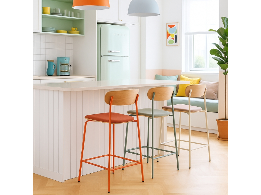 Barová židle Marckeric Adriana s čalouněným sedákem se pyšní kombinací dřevěného dekoru a jemného odstínu béžové barvy. Elegantně tvarovaná konstrukce se štíhlými liniemi přinese k vašemu barovému stolu nebo kuchyňskému ostrůvku svěží závan moderního designu. A pokud máte doma také klasický jídelní stůl, můžete celý prostor sladit a pořídit si ji také v menším jídelním provedení! V náručí těchto kousků si vychutnáte každé jídlo v pohodlí.