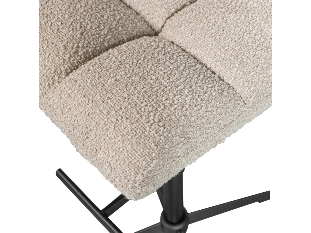 Design barové židle Darin s otočnou a nastavitelnou podnoží, které má v sobě lehký nádech retra, si snadno zamilujete. Prošívání zvýrazňuje nadýchaný a maximálně pohodlný sedák, ze kterého se vám nebude chtít vstávat. Spojení příjemného bouclé čalounění v béžové barvě a kontrastní černé kovové podnože vytváří kombinaci, která s sebou přináší osobitost a eleganci. Barovka Darin nejlíp vynikne v moderních a minimalistických interiérech. K dispozici je také v provedení klasických jídelních židlí.