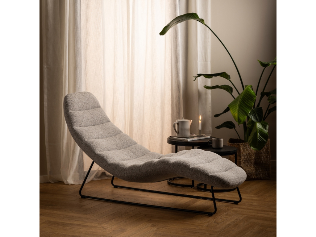 Pohodlně se natáhnout, zapomenout na čas a nechat svět chvíli jen tak plynout – přesně k tomu je tu lenoška Chappy. Její zaoblení linie a měkké čalounění v příjemné béžové látce si vás získají hned, jakmile se poprvé posadíte. Ať už si jen na chvíli odpočinete, přečtete pár stránek nebo si dáte kávu, stane se Chappy zaručeně vaším oblíbeným místem. Stabilní kovová konstrukce s matně černou úpravou dodává lenošce moderní výraz a lehkost, díky které skvěle zapadne do většiny interiérů – například do minimalistických, industriálních či scandi.