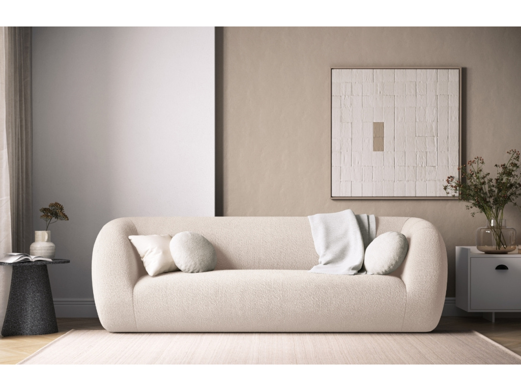 Třímístná pohovka Essen od značky Cosmopolitan Design je výrazný kus nábytku, který v sobě spojuje jednoduchost a eleganci. O vaše maximální pohodlí se postará příjemné bouclé čalounění v béžovém provedení. Tkanina je velmi odolná proti oděru, čímž zaručí dlouhodobé používání bez známek opotřebení. Pohovka Essen svými proporcemi nabídne nejen prostorné a pohodlné místo, ale zamilujete si také její čisté linie a nadčasový vzhled. Pro sjednocení vašeho sedacího koutu doporučujeme pohovku doplnit také stylovým křeslem ze stejnojmenné série. Všechny produkty nabízíme v několika barvách. Odpočiňte si a relaxujte ve stylu!