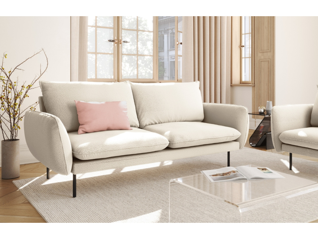 Pohovka Vienna od Cosmopolitan Design je poctou nadčasové eleganci, smyslu pro detail a dokonale vyváženým proporcím. Jemně tvarované opěrky, měkké polštáře a ladná silueta jí propůjčují lehkost, která zaujme na první pohled. Kontrastní černě lakovaná kovová podnož dodává celku vizuální vzdušnost a současně zajišťuje stabilitu. O vaše pohodlí se postará příjemné bouclé čalounění, které vás doslova pohltí a zaoblené područky vám poskytnou nadměrný komfort při sezení. Na výběr je ze tří pečlivě vybraných odstínů, které se snadno sladí s jemně minimalistickým interiérem i s odvážnějšími koncepty. Vienna vždy zapadne s lehkostí a zároveň dodá prostoru výraz. A protože každý domov má jiné potřeby, kolekce Vienna je k dispozici v několika velikostech – od kompaktních modelů ideálních do menších bytů až po velkorysé pohovky, na které se vejde celá rodina i s chlupatým parťákem.