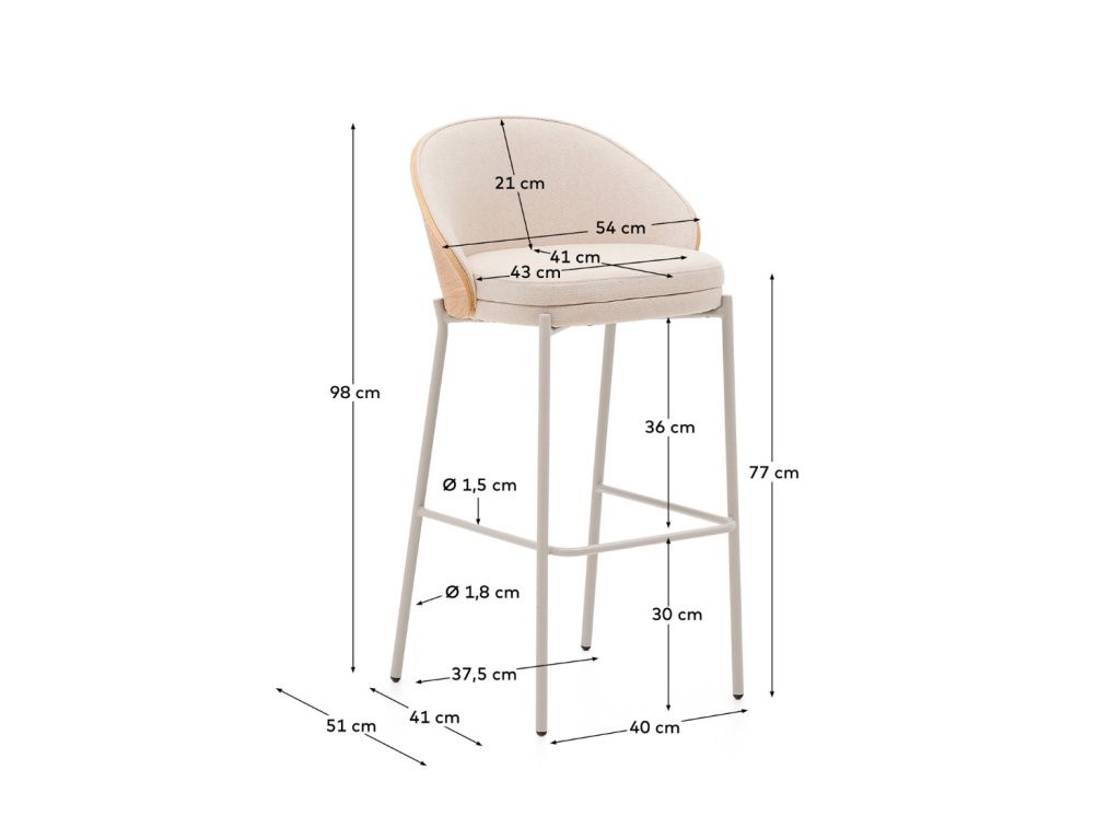 Barová židle Kave Home Eamy zaujme svým prostorným opěradlem, vyrobeným z přírodně zbarvené jasanové dýhy s krásnou výraznou kresbou. Vkusně jej doplňuje žinylkové čalounění béžové barvy a štíhlá kovová podnož s opěrkou na nohy. Eamy bude u barového pultu i kuchyňského ostrůvku nejen pohodlným místem k sezením, ale také designovým kouskem, který dodá celé místnosti styl. Dostupná je v několika barevných variantách.