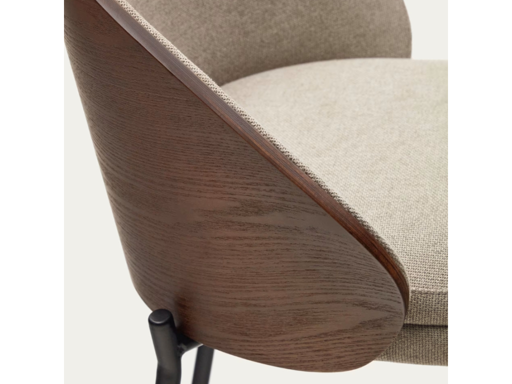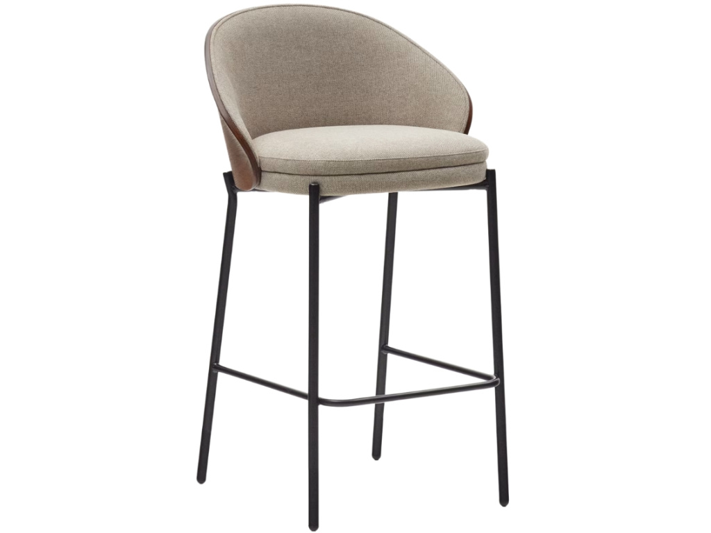 Podívám seBéžová látková barová židle Kave Home Eamy s hnědým dřevěným opěradlem 65 cm
