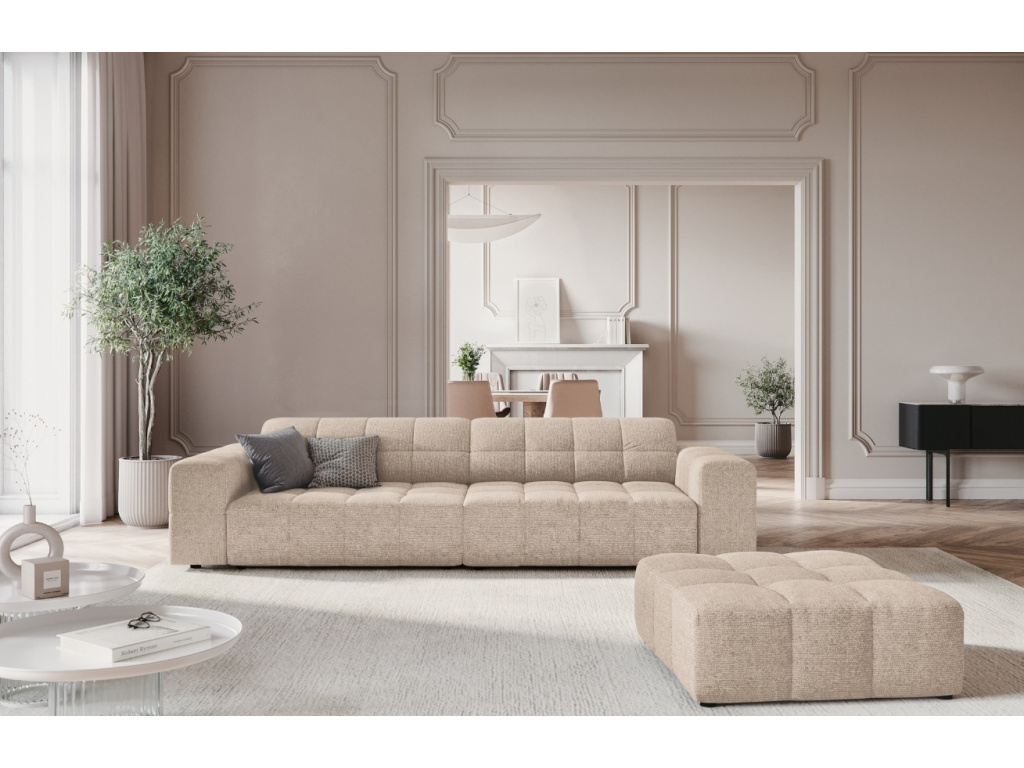 Čtyřmístná pohovka Chicago od značky Cosmopolitan Design vás na první pohled oslní charakteristickým prošíváním, které vybízí k nespoutané relaxaci. Žinylkové čalounění v béžovém odstínu je odolné proti oděru a zároveň velmi příjemné až téměř hedvábné na dotek. Probarvené nitě vytvářejí poutavou 3D strukturu se stínovým a lesklým efektem. Atraktivní design s nádechem luxusu a klasiky jsou přesné známky pohovky Chicago. Tento skvostný kus nábytku nejen zaujme na první pohled, ale především zútulní váš interiér ve skandinávském nebo glamour stylu. Kolekce Chicago osloví každého, kdo hledá designové inovace a nebojí se experimentovat. A že není béžová barva tou pravou pro vás? Pohovky jsou dostupné v několika různých variantách!