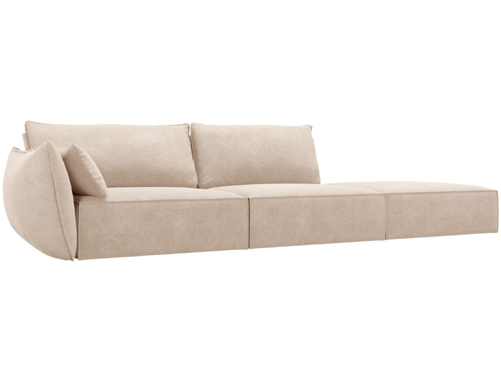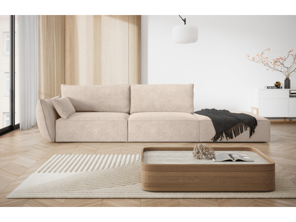 Čtyřmístná pohovka Kaelle od značky Micadoni zaujme elegantním nízkým sezením a tvarovanými područkami, které jí dodávají jedinečný vzhled. Obdélníková silueta s propracovaným lemováním kolem područek a opěradel připomíná tvary polštářů, které poskytují pohodlí a činí pohovku ideálním doplňkem moderního obývacího pokoje. Součástí sezení je malý polštářek, který dodává styl i komfort. Celý povrch je čalouněn žinylkovou tkaninou, která je velmi příjemná až téměř hedvábná na dotek. Probarvené nitě vytvářejí poutavou 3D strukturu se stínovým a lesklým efektem. Tkanina je velmi odolná proti oděru, díky tomu je pohovka vhodná i do komerčních prostor. Tento model lze navíc snadno kombinovat s dalším nábytkem ze stejné kolekce a je dostupným jak v žinylkovém, tak v sametovém provedení.