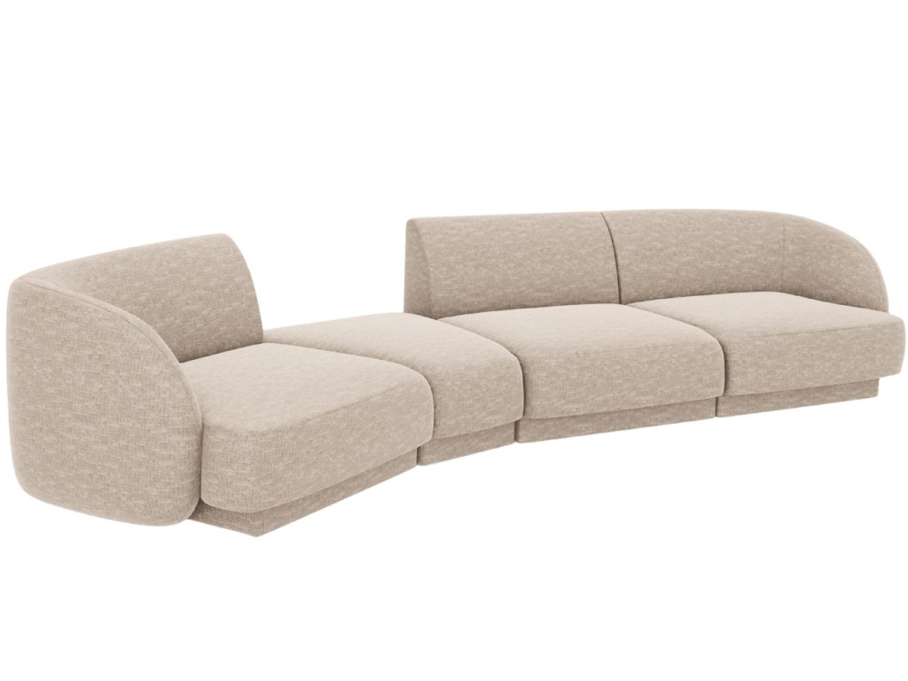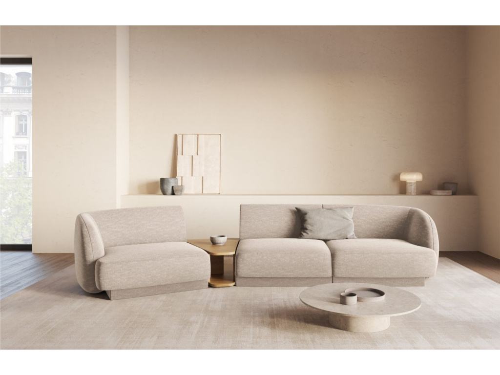 Čtyřmístnou pohovku Miley od značky Micadoni si zamilujete! Její elegantně obloukovité opěradlo vás doslova zve k odpočinku, zatímco jemně zapuštěná základna dodává celému kusu vzdušnost a lehkost. Žinylková potahová látka je velmi příjemná až téměř hedvábná na dotek. Probarvené nitě vytvářejí poutavou 3D strukturu se stínovým a lesklým efektem. Tkanina je velmi odolná proti oděru, díky tomu je pohovka vhodná i do komerčních prostor. Vysoká kvalita a neobyčejný vzhled látky dodávají nábytku sofistikovaný dojem, který umožňuje jeho široké využití v moderním nebo skandinávském stylu. Integrovaný konferenční stolek je nejen designovým prvkem, ale také praktickým místem pro odložení věcí, které chcete mít po ruce, nebo pro umístění dekorací. K pohovce je možné přikoupit další produkty z kolekce Miley. Díky tomu si můžete vytvořit sedací soupravu, kterou je vhodné kombinovat se skleněným nebo dřevěným konferenčním stolkem.